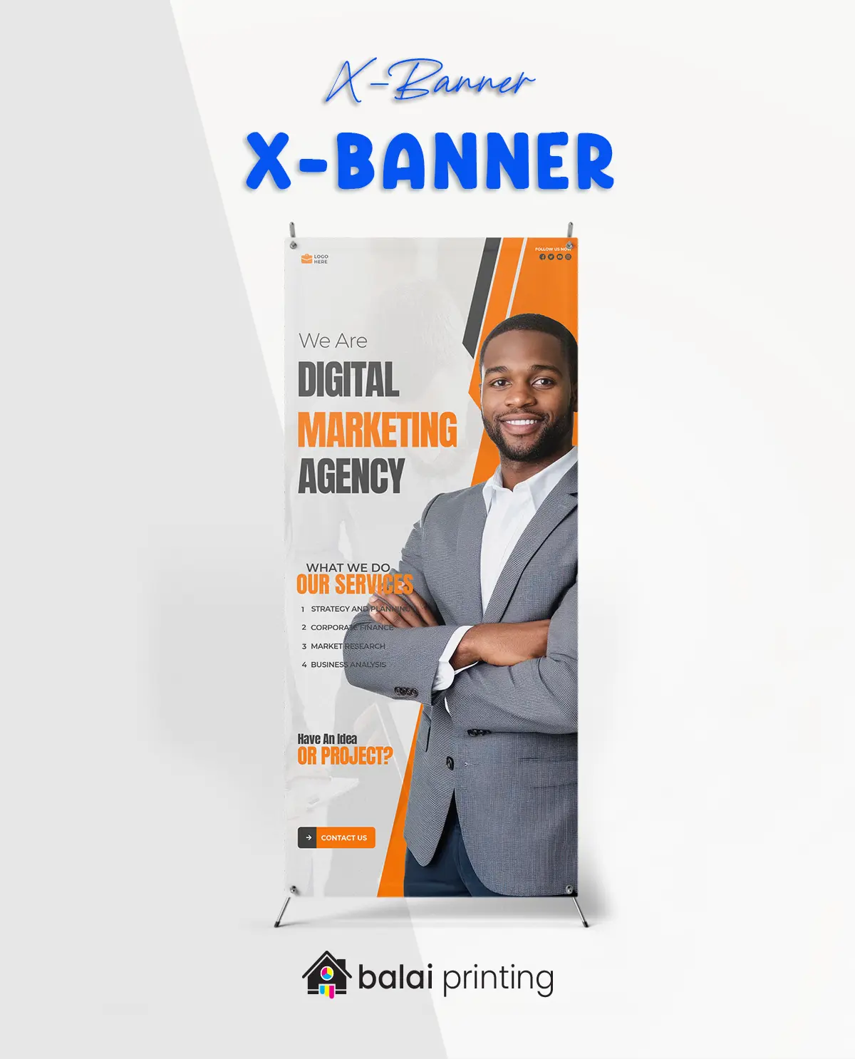 Cetak X-Banner Online dengan berbagai ukuran X-Banner seperti 60 x 160 cm dan 80 x 200 cm.